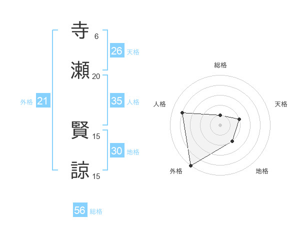 寺瀬 賢諒さんの総格は56画の1点!