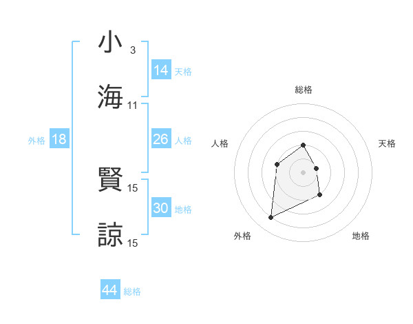 小海 賢諒さんを姓名の画数から五運を鑑定
