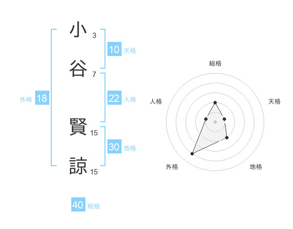 小谷 賢諒さんを姓名の画数から五運を鑑定