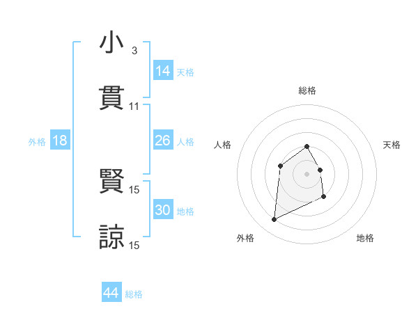 小貫 賢諒さんを姓名の画数から五運を鑑定