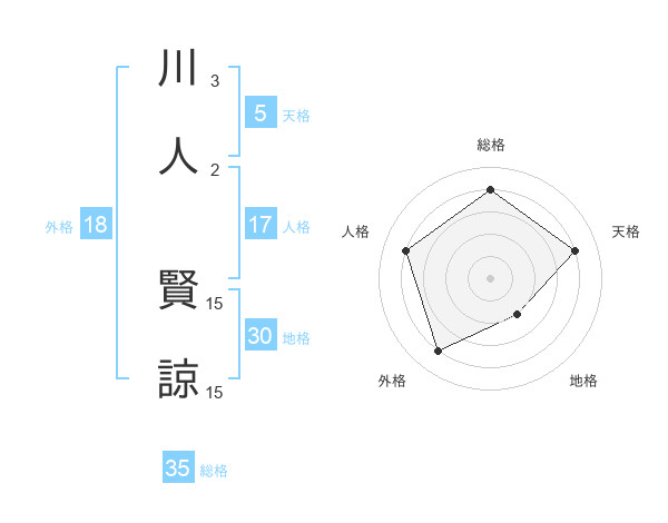 川人 賢諒さんを姓名の画数から五運を鑑定