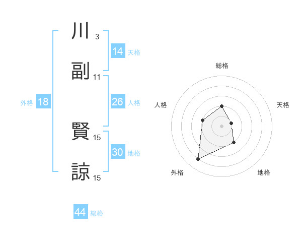 川副 賢諒さんの総格は44画の2点!