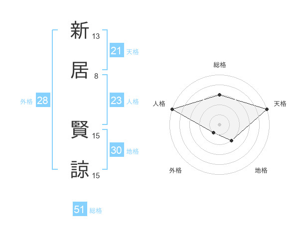 新居 賢諒さんの総格は51画の3点!