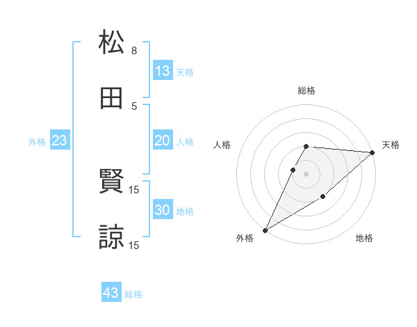 松田 賢諒さんを姓名の画数から五運を鑑定
