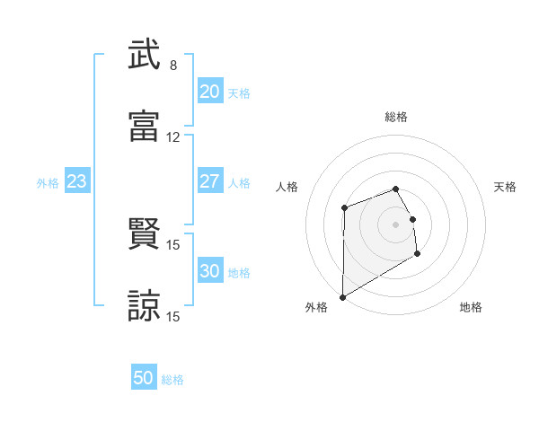 武富 賢諒さんの総格は50画の2点!