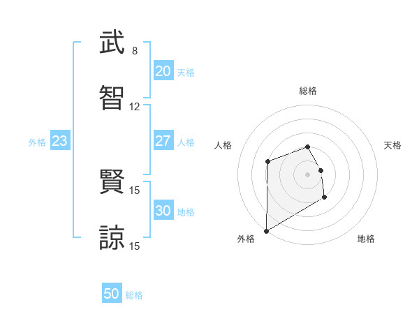 武智 賢諒さんの総格は50画の2点!