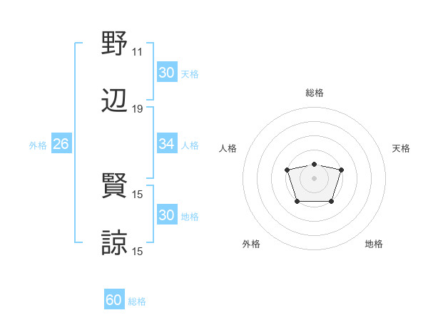 野辺 賢諒さんの天格は30画の2点!