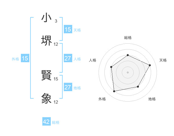 小堺 賢象さんを姓名の画数から五運を鑑定