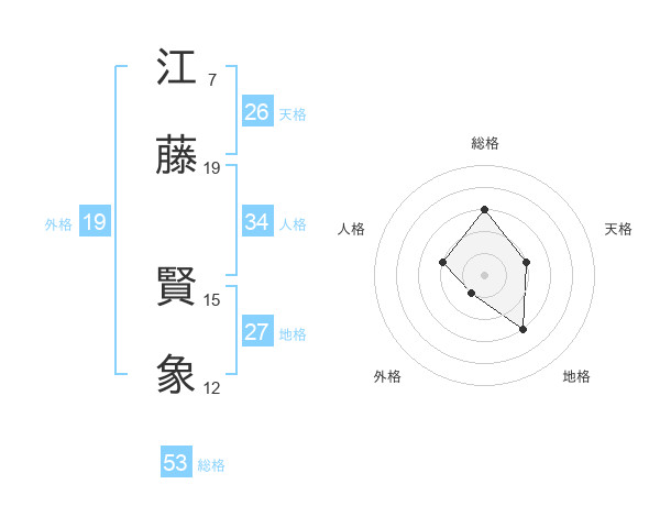 江藤 賢象さんを姓名の画数から五運を鑑定