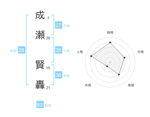 成瀬 賢轟さんを姓名の画数から五運を鑑定