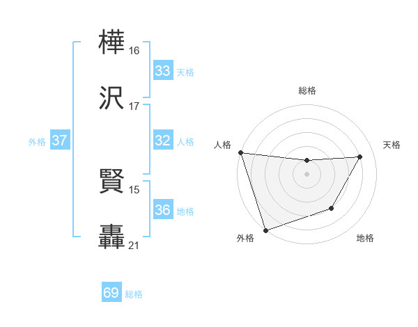 樺沢 賢轟さんを姓名の画数から五運を鑑定