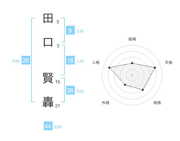 田口 賢轟さんの総格は44画の2点!