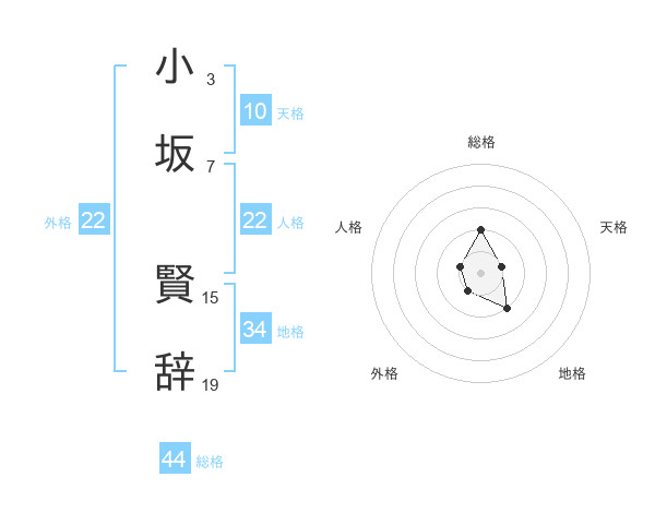 小坂 賢辞さんの外格は22画の1点!