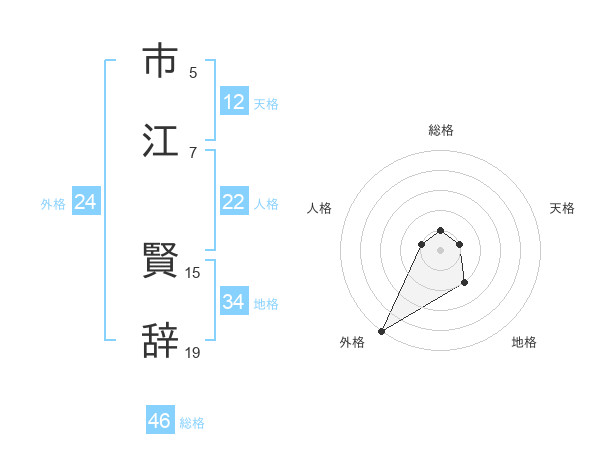 市江 賢辞さんの外格は24画の5点!