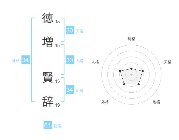 徳増 賢辞さんを姓名の画数から五運を鑑定