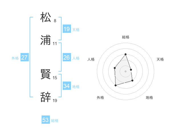 松浦 賢辞さんを姓名の画数から五運を鑑定