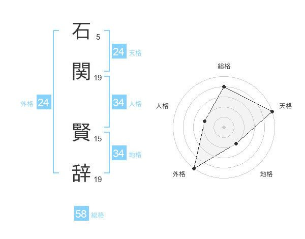 石関 賢辞さんを姓名の画数から五運を鑑定