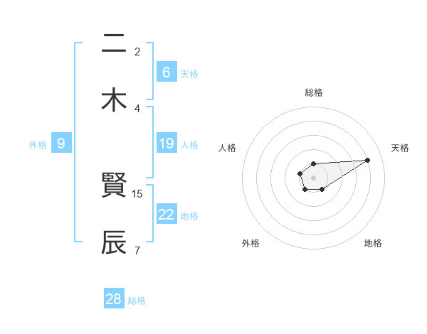 二木 賢辰さんを姓名の画数から五運を鑑定