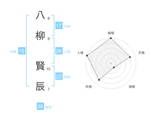 八柳 賢辰さんの総格は39画の5点!