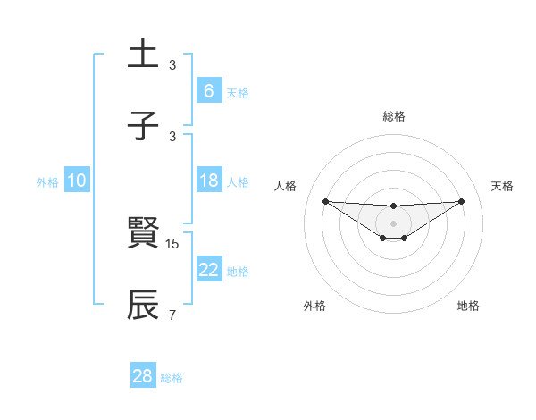 土子 賢辰さんを姓名の画数から五運を鑑定