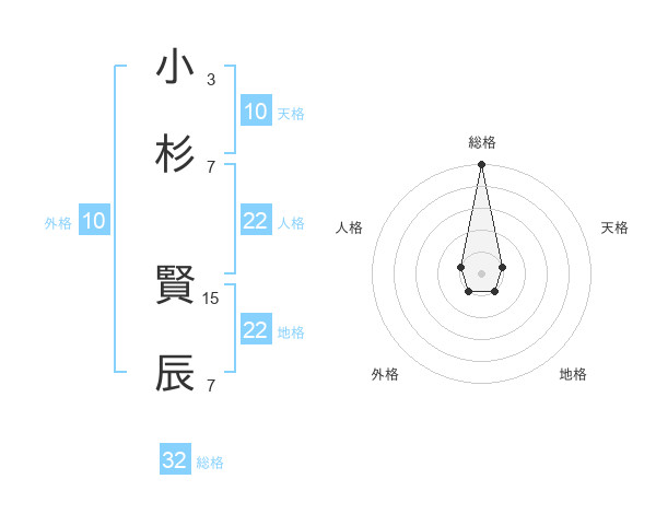 小杉 賢辰さんを姓名の画数から五運を鑑定