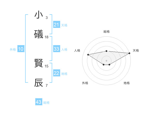 小礒 賢辰さんの天格は21画の5点!