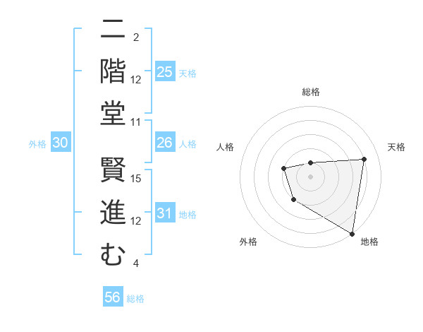 二階堂 賢進むさんを姓名の画数から五運を鑑定