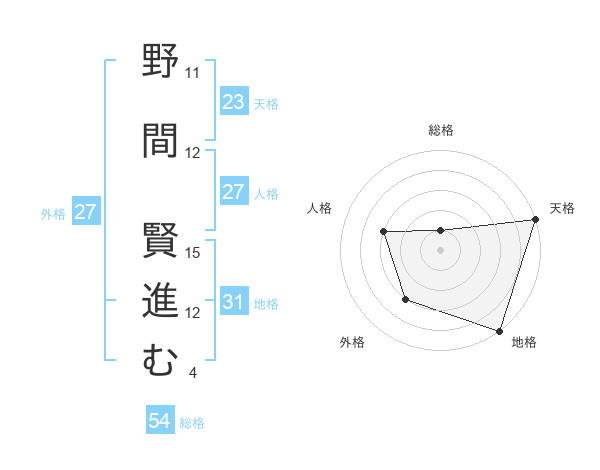 野間 賢進むさんの天格は23画の5点