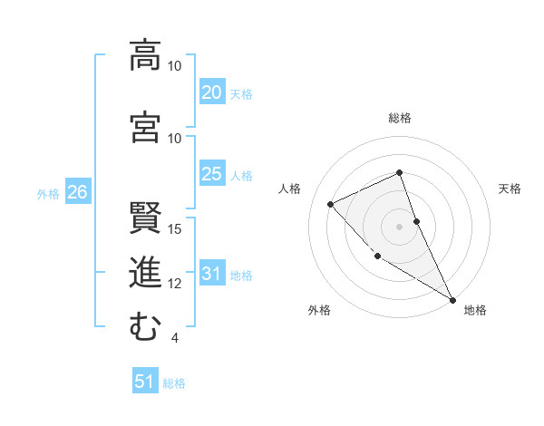 高宮 賢進むさんの総格は51画の3点