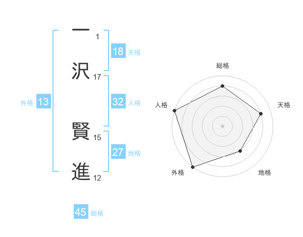 一沢 賢進さんの総格は45画の4点!