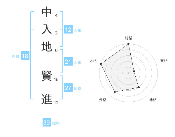 中入地 賢進さんを姓名の画数から五運を鑑定