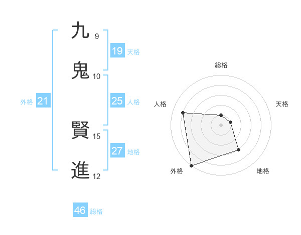 九鬼 賢進さんを姓名の画数から五運を鑑定