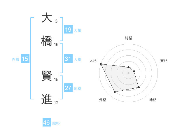 大橋 賢進さんを姓名の画数から五運を鑑定