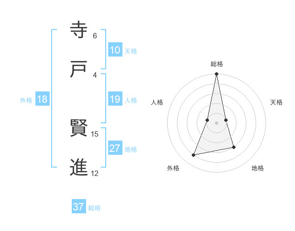 寺戸 賢進さんの総格は37画の5点!