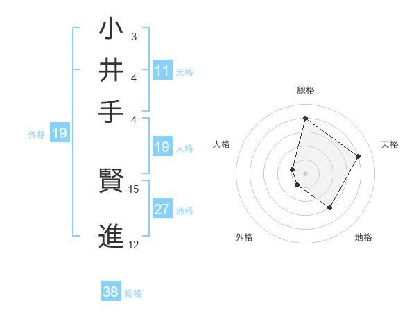 小井手 賢進さんの総格は38画の4点!