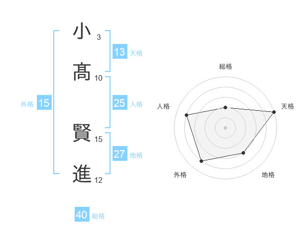 小髙 賢進さんの天格は13画の5点!