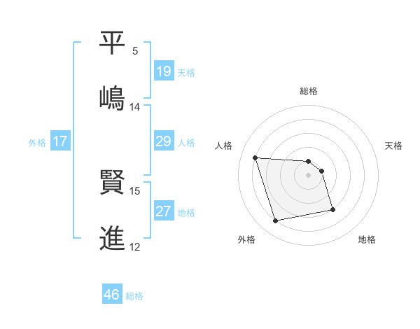 平嶋 賢進さんの人格は29画の4点!