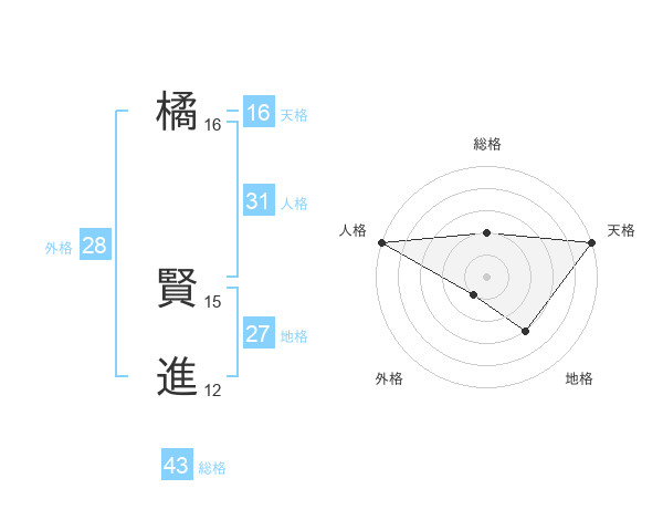 橘 賢進さんの人格は31画の5点!