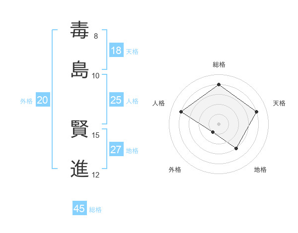 毒島 賢進さんを姓名の画数から五運を鑑定