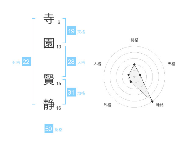 寺園 賢静さんを姓名の画数から五運を鑑定