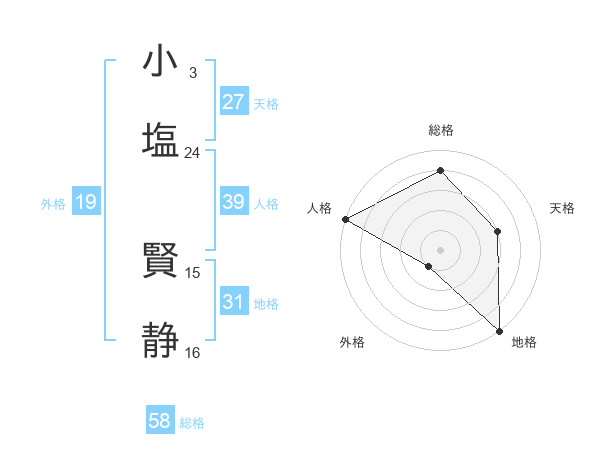 小塩 賢静さんの総格は58画の4点!
