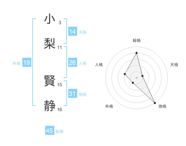 小梨 賢静さんの総格は45画の4点!