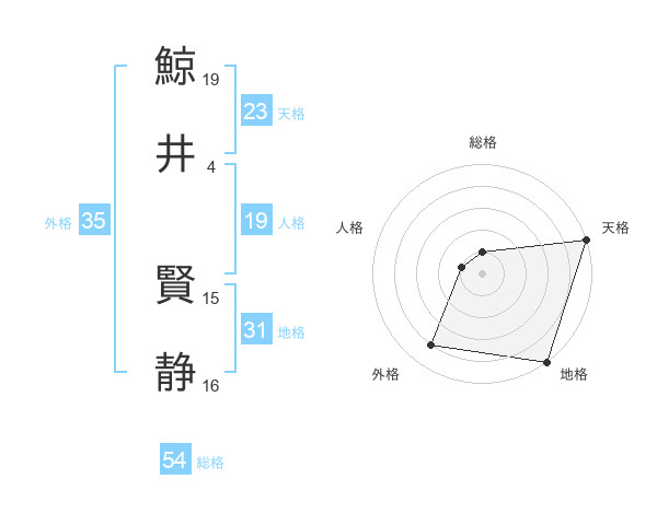 鯨井 賢静さんの天格は23画の5点!