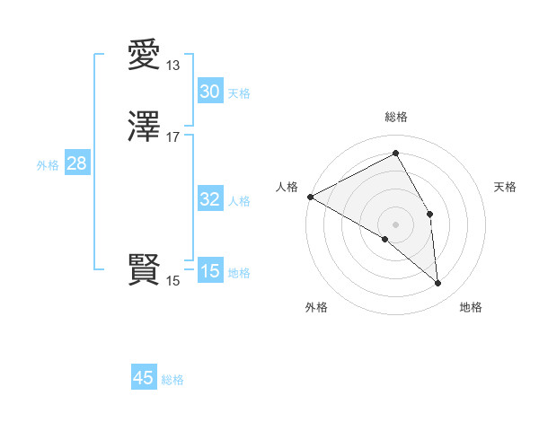 愛澤 賢さんを姓名の画数から五運を鑑定