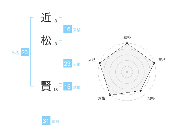 近松 賢さんの総格は31画の5点!