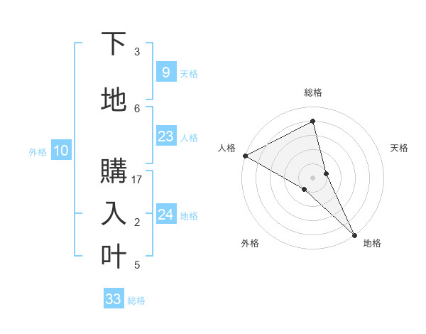 下地 購入叶さんを姓名の画数から五運を鑑定
