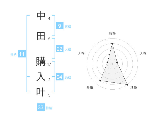 中田 購入叶さんを姓名の画数から五運を鑑定