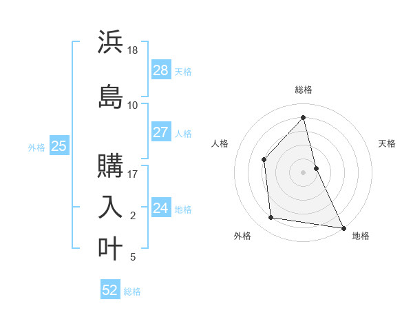 浜島 購入叶さんの総格は52画の4点