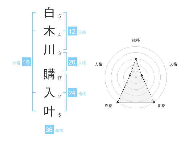 白木川 購入叶さんの地格は24画の5点!
