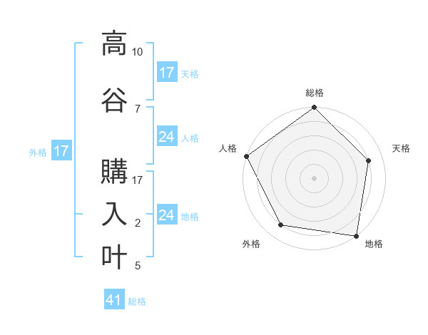 高谷 購入叶さんの総格は41画の5点!